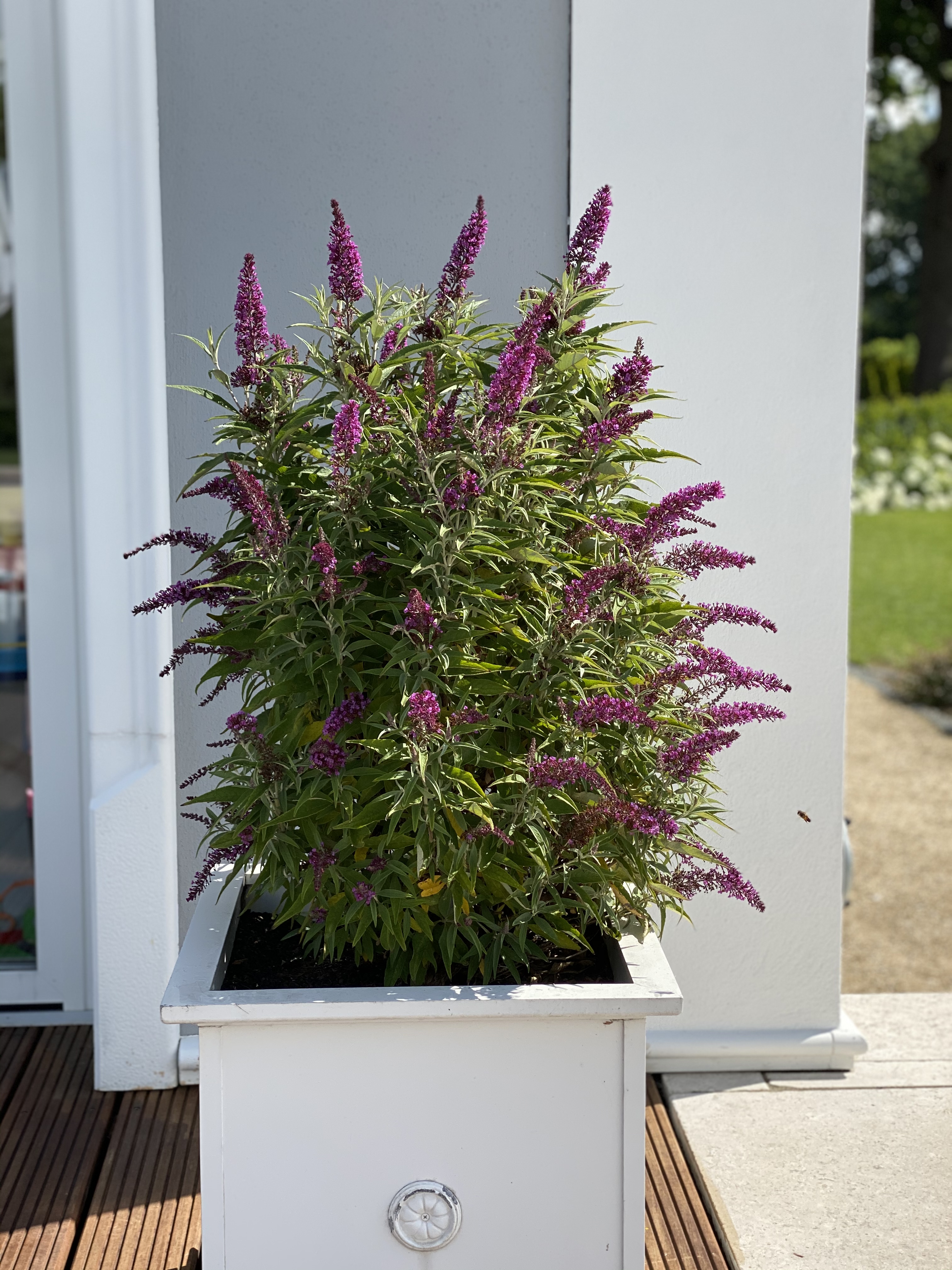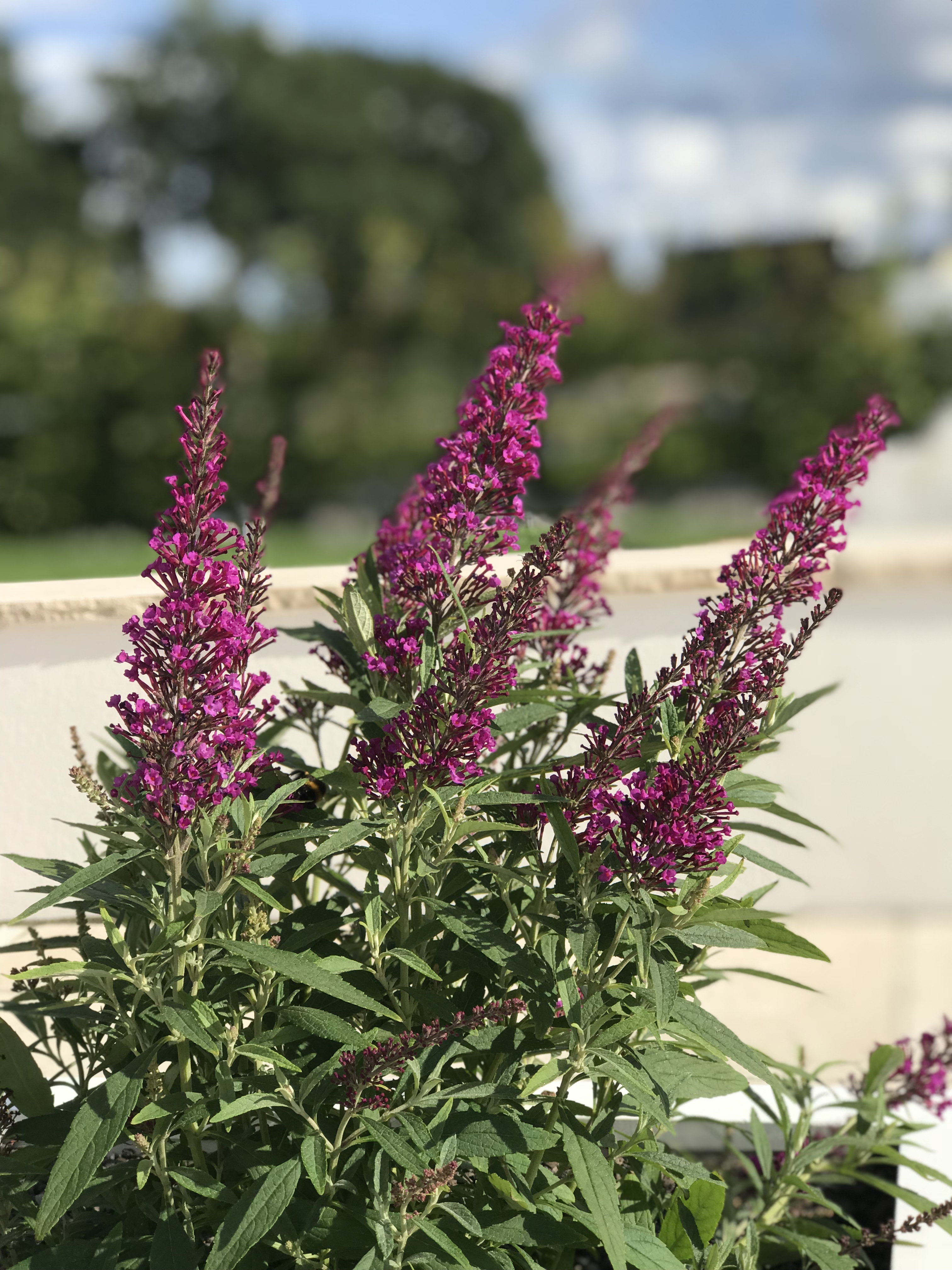 Züchtung von THOMPSON & MORGAN, Ipswich, England; Wuchs bis 2 m hoch und 1 m breit, mehrtriebig, straff aufrecht; Belaubung dunkelgrün; Blüten magenta bis rotviolett, in 20-25 cm langen, aufrechten Rispen - erster hochwachsender und bereits sehr gut nachgefragter Sommerflieder, ideale trockenheitsverträgliche Hecken- und Terrassenpflanze, hübsch für Eingangsbereiche und Naturgärten, Bienennährgehölz, Schmetterlingsmagnet. Pflanze des Jahres 2019 auf der Chelsea Flower Show. H, D, K, R, S, St. Zone 6b. LB 9.1.1.5. Gemeinschaftlicher Sortenschutz EU 58808. Geschützte Sorte - unerlaubter Nachbau verboten!