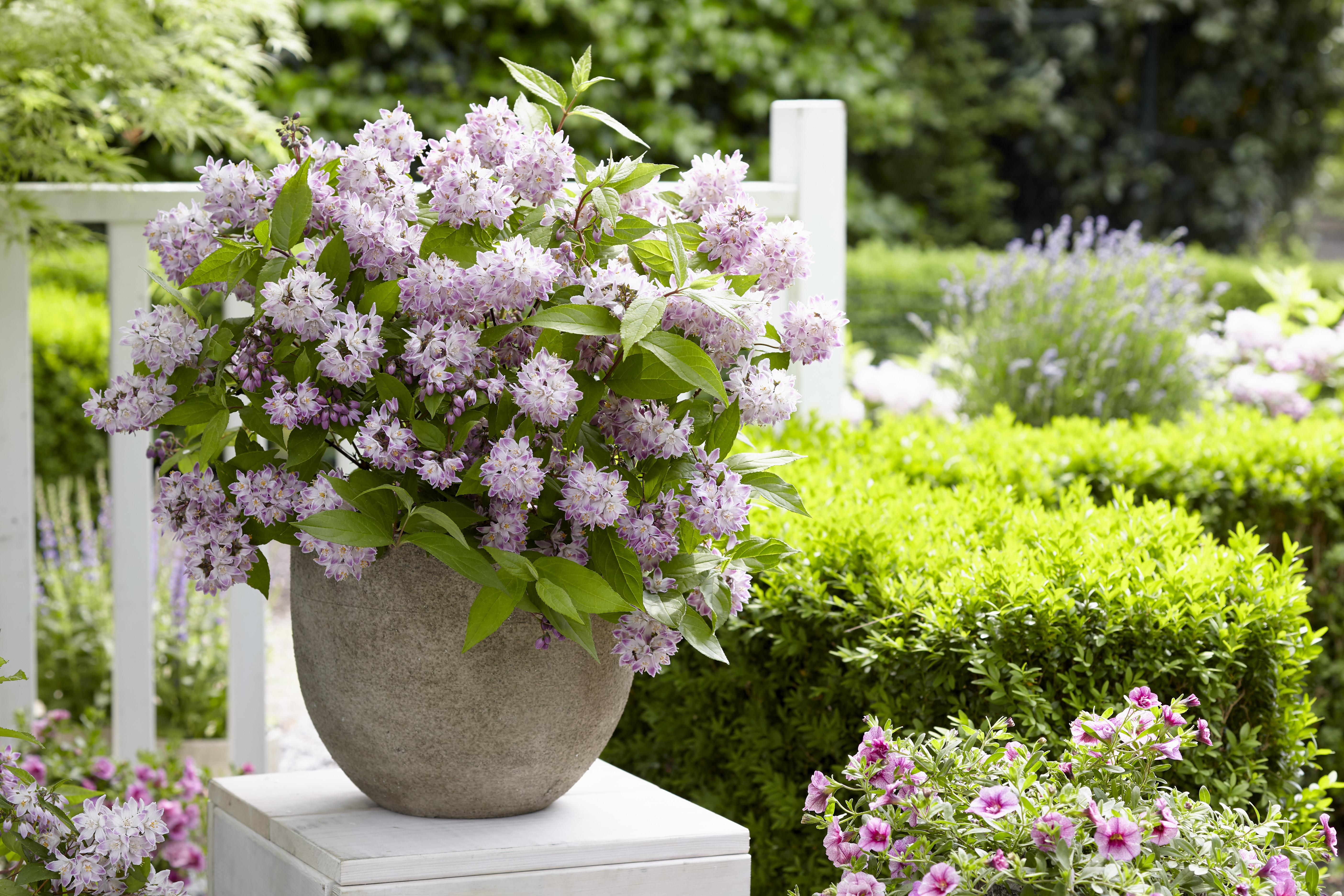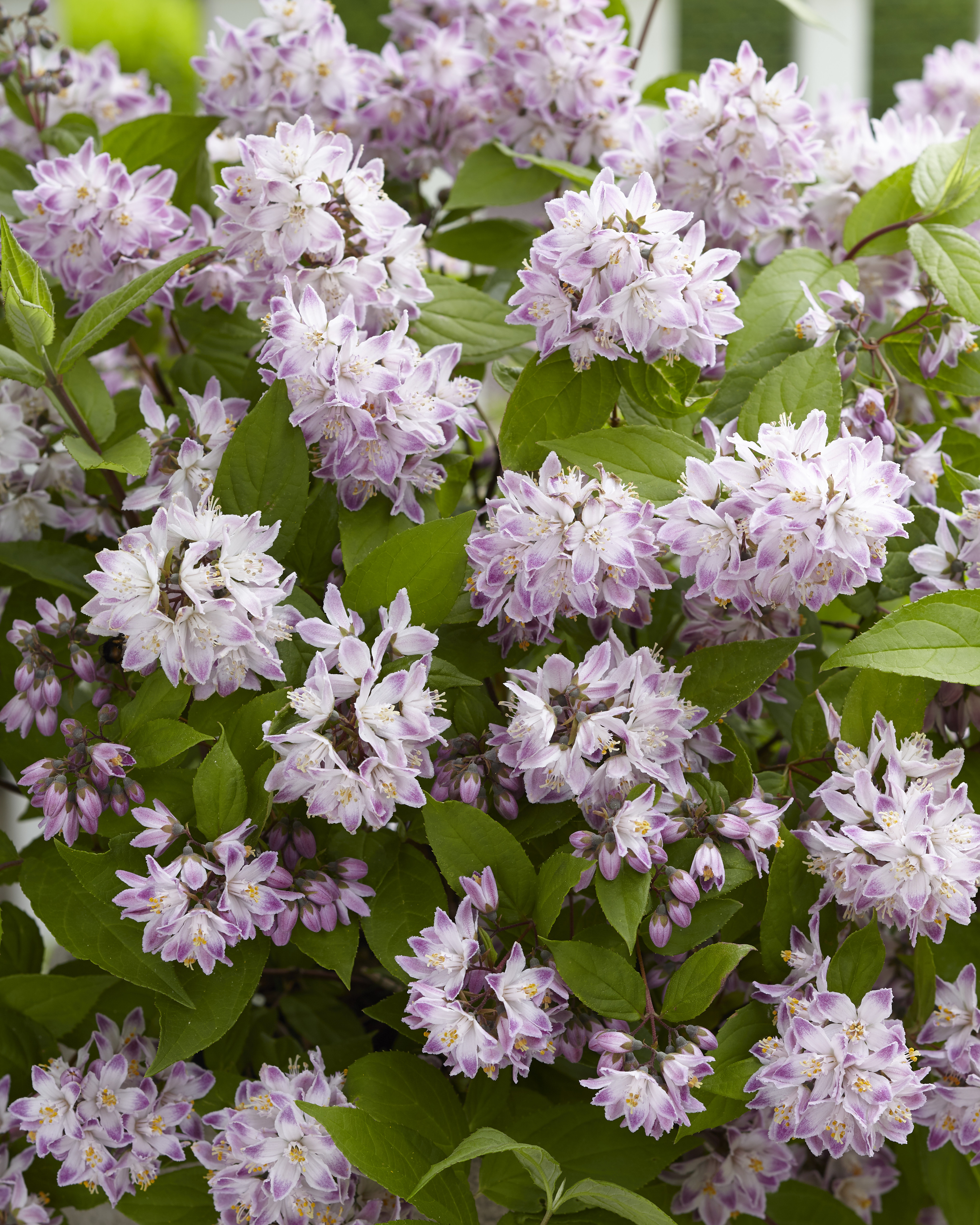 Eine Verbesserung im Deutzien-Sortiment, gezüchtet von LOWATERS LTD., Southampton, England; Wuchs vieltriebig, ca. 1 m hoch und breit; Blüten in der Knospe rosarot, später rosa mit weiß und violett, leicht duftend - ein hervorragender Blütenstrauch, pflegeleicht und gut zu kultivieren, von Bienen und Insekten beflogen, geeignet für niedrige Hecken, Gruppen oder Einzelstellung und eine Show in allen Pflanzgefäßen auf Balkon oder Terrasse. H, K, S. Zone 6a. LB 9.3.2.6. Gemeinschaftlicher Sortenschutz EU 53093. Geschützte Sorte - unerlaubter Nachbau verboten!