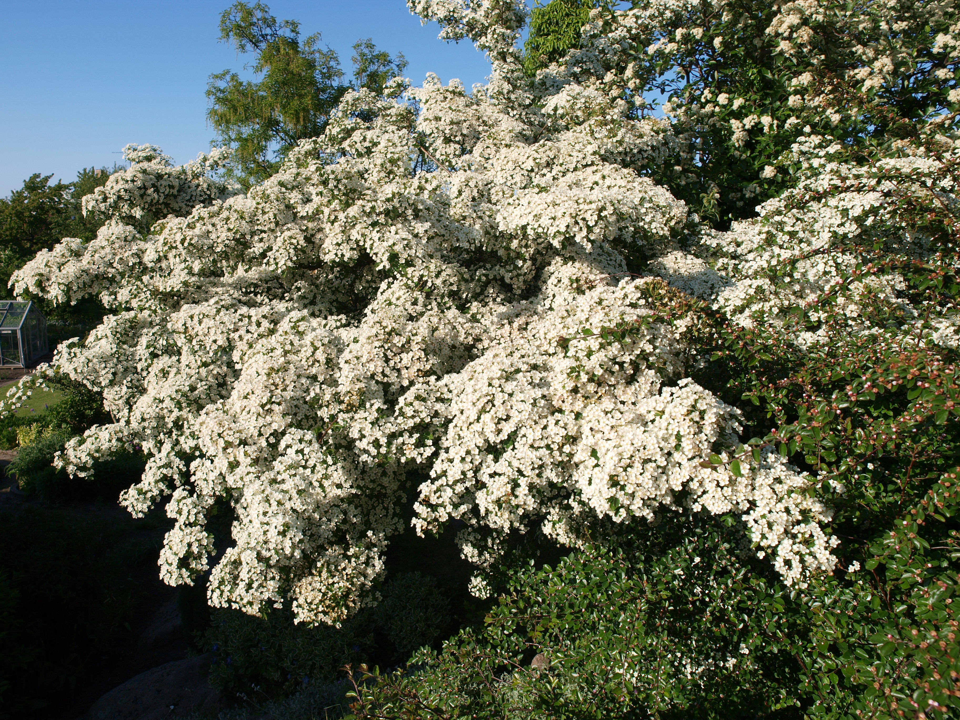 Großstrauch oder bis 10 m hoher Baum; Blätter 2–6 cm lang, breit ei- bis rautenförmig, glänzend dunkelgrün, im Herbst meist gelborange bis weinrot; Blüten weiß, 0,8–1,5 cm breit, zu 4–15 in kahlen Trugdolden, Mai–Juni; Früchte kugelig bis eiförmig-elipsoid, 6–10 mm dick – anspruchsloses, heimisches Pioniergehölz, bildet undurchdringliche Hecken, gut geeignet für Windschutzpflanzungen, zum Begrünen und Befestigen von Trümmerhalden, Niststätte für Kleintiere, Bienennährweide, Vogelschutzgehölz. H, R, St. Zone 5a. LB 3.1.5.4 (9.1.4.4).