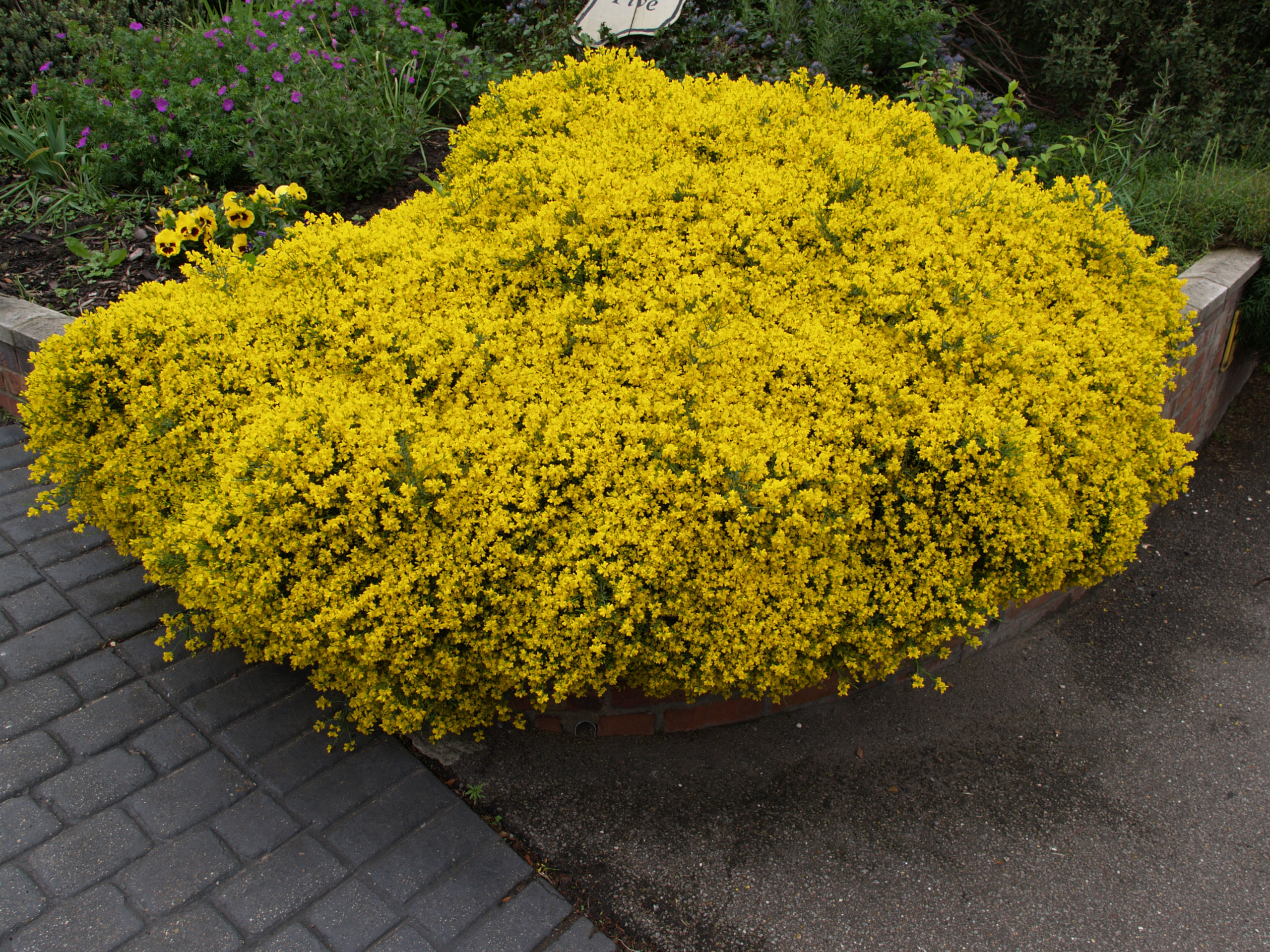 Bis etwa 0,5 m hoher, niedergestreckter, unbewehrter Strauch; Zweige graugrün, bogig nach unten geneigt; Blätter einfach, graugrün; Blüten goldgelb, zu wenigen in zahlreichen, dichtblütigen Trauben, Mai–Juni – überreich blühender Zwergstrauch für Heide-, Stein- und Troggärten. D, K, Z. AGM 1993. Zone 7a. LB 6.1.2.7.