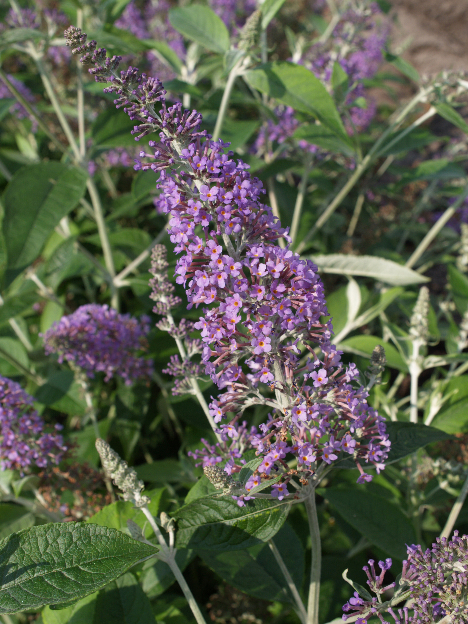 A well-branched, wide and compact-growing cultivar (1.5 to 2 m tall and wide); young sprigs are silvery white and downy; leaves are green, silvery white on the undersides; flowers lovely violet with a deep orange mouth, appearing August till October ? a lovely cultivar, flowering in abundance. D, K, S, St. Zone 6b.