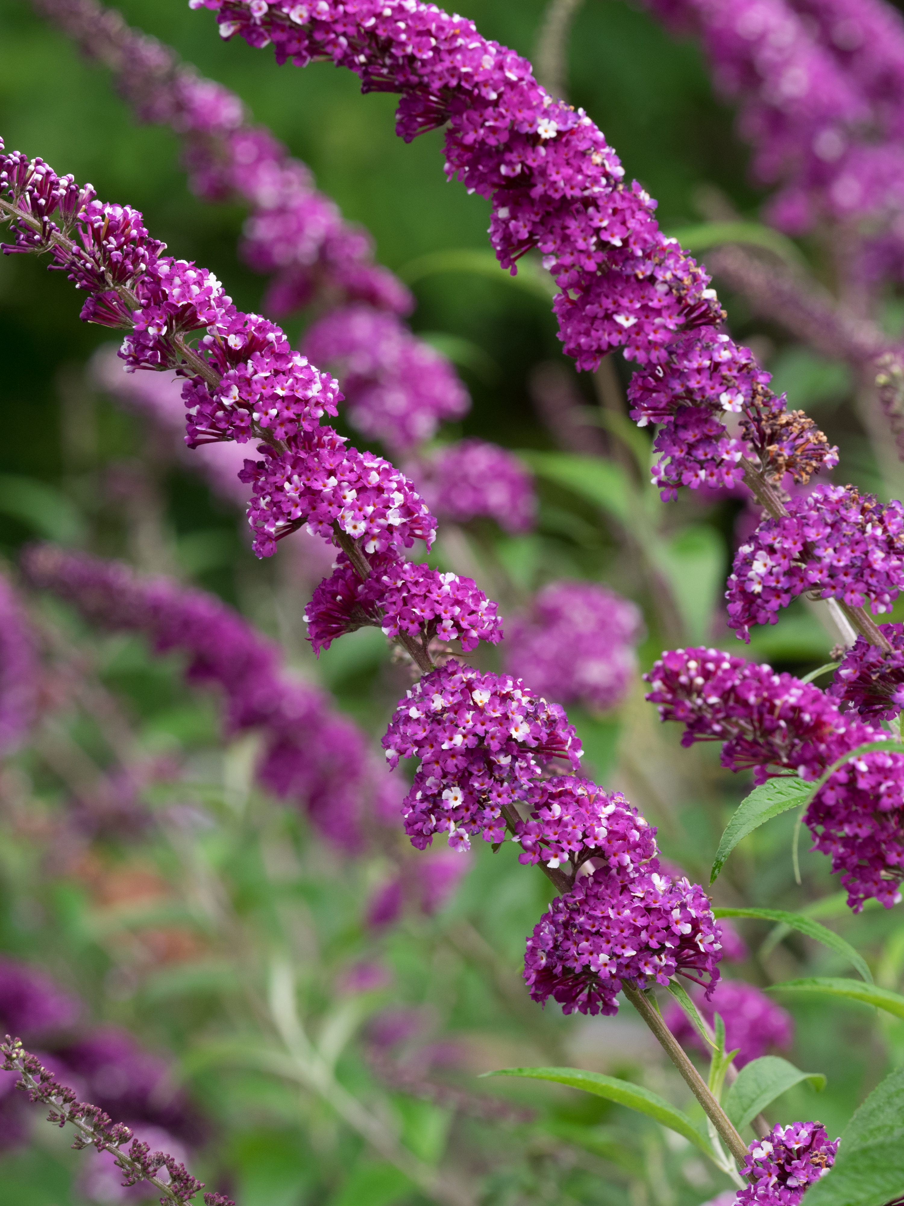 Bred by Peter R. Moore in Stockbridge, England. Plant habit to 2m tall and 0.7m wide, broadly bushy-upright, lateral shoots slightly pendulous. Dark-green, narrow foliage; scented flowers bourne in long, upright, two-toned spikes – dark lilac with white segments forming a pleasant contrast. A striking magnet for bees and butterflies, drought-tolerant, excellent winter hardiness and suitable for all soil types, also for containers on balconies and terraces and in the landscape as well as a cut flower for the vase. D, K, R, S. Zone 6b. European Plant Breeders Rights EU 52668. Protected variety - unauthorized reproduction prohibited!